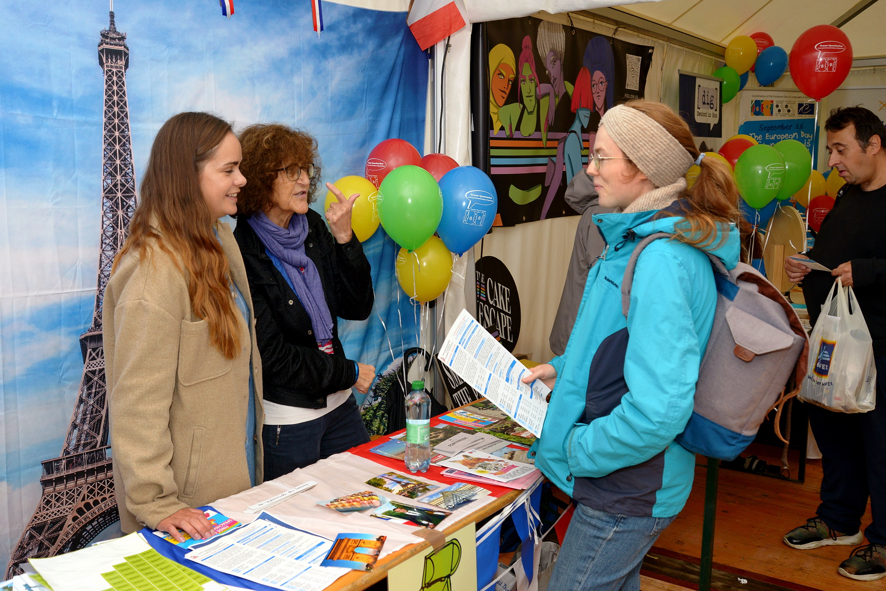 Trotz des Regens waren die Zelte gut besucht, die Workshops ausgebucht und die Sprachenstadtspaziergänge unterwegs.